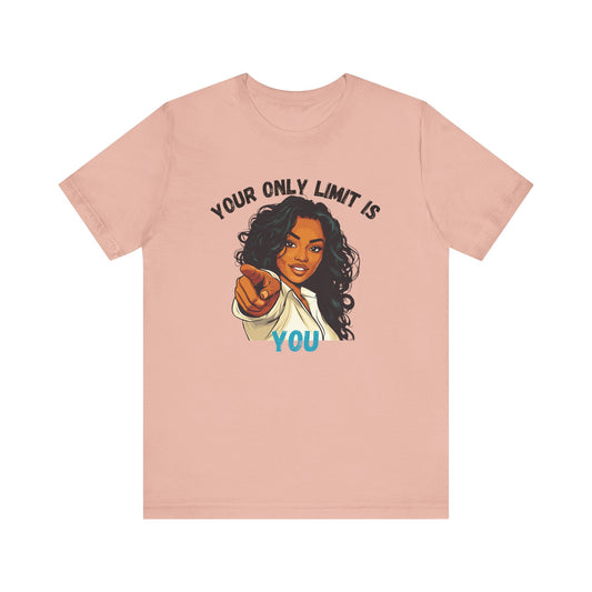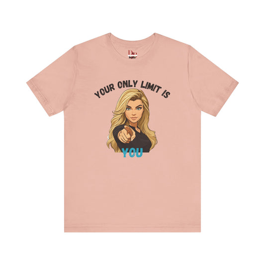 "Your Only Limit Is You" Inspirational Shirt – Motivational Tee in Black & Blue Text